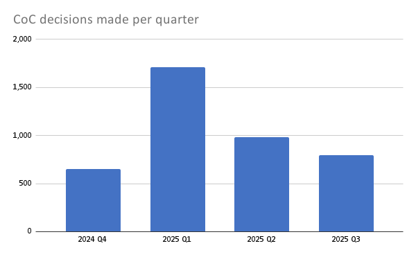 Decreasing CoC decisions and a growing backlog